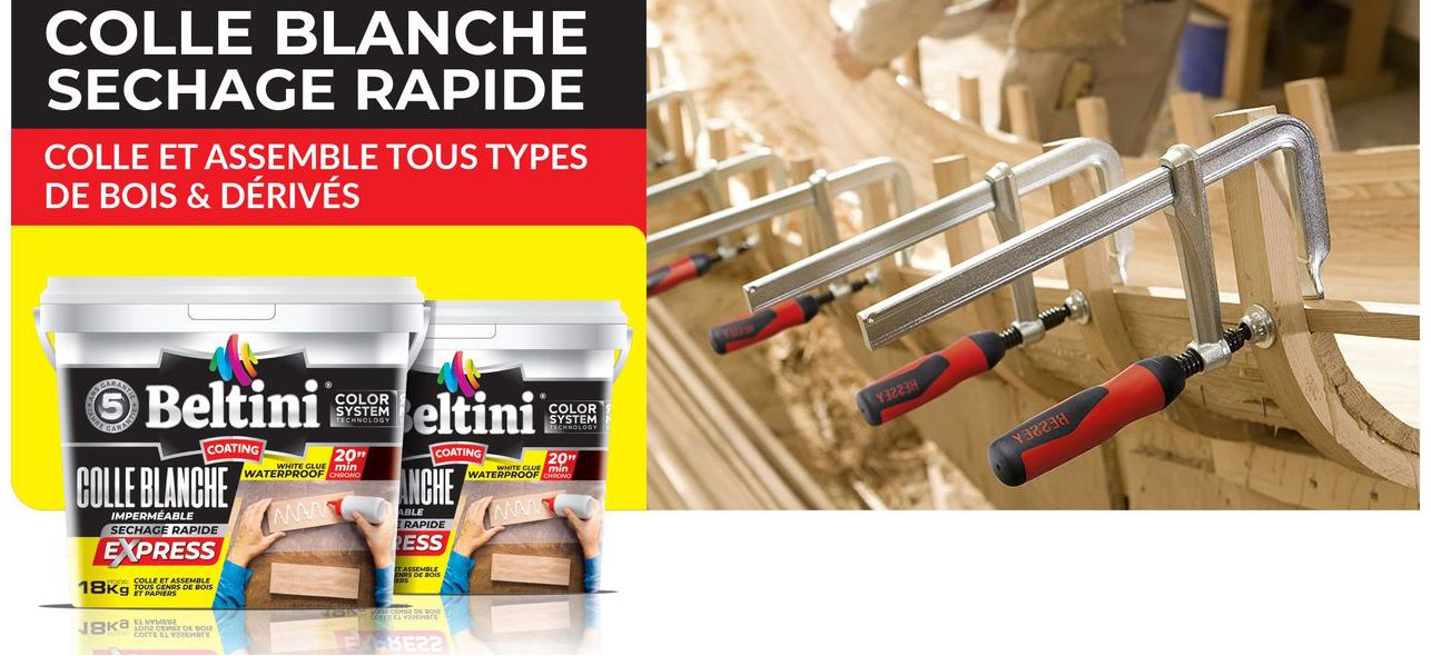 DESTINATIONS: Elle est utilisable pour réparer ou aménager tous vos supports en bois (toutes d’essences de bois). Son utilisation est recommandée en menuiserie intérieure et particulièrement en milieux difficiles (salle de bain, intérieur des bateaux, cave…) ou en extérieur abrité. AVANTAGES: Haute résistance à l’humidité (classée D3 selon la norme NF EN 204-205) • Prise: 20 min. Résistant thermique jusqu’à +70°C. Translucide après séchage. Ininflammable. MISE EN OEUVRE : colle blanche beltini est prête à l’emploi. Les surfaces à coller doivent être propres, planes, sèches et dépoussiérées. Appliquer une fine couche de colle sur l’une des parties à assembler. Pour une surface importante, un encollage à double face est recommandé.